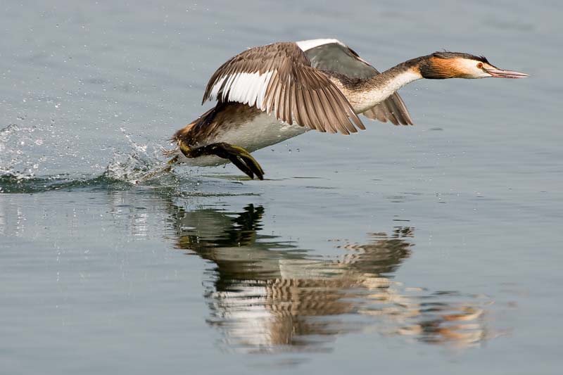 Great Crested Grebe chasing another grebe, from Tern Hide.